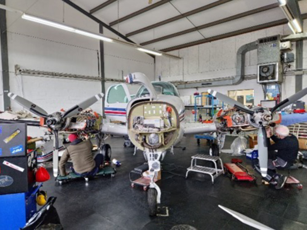 Reparaturen und Wartungen von ein- und zweimotorigen Luftfahrzeugen in Metall-, Holz-, Stoff- und Kunststoffbauweise